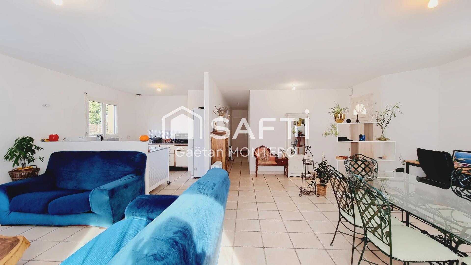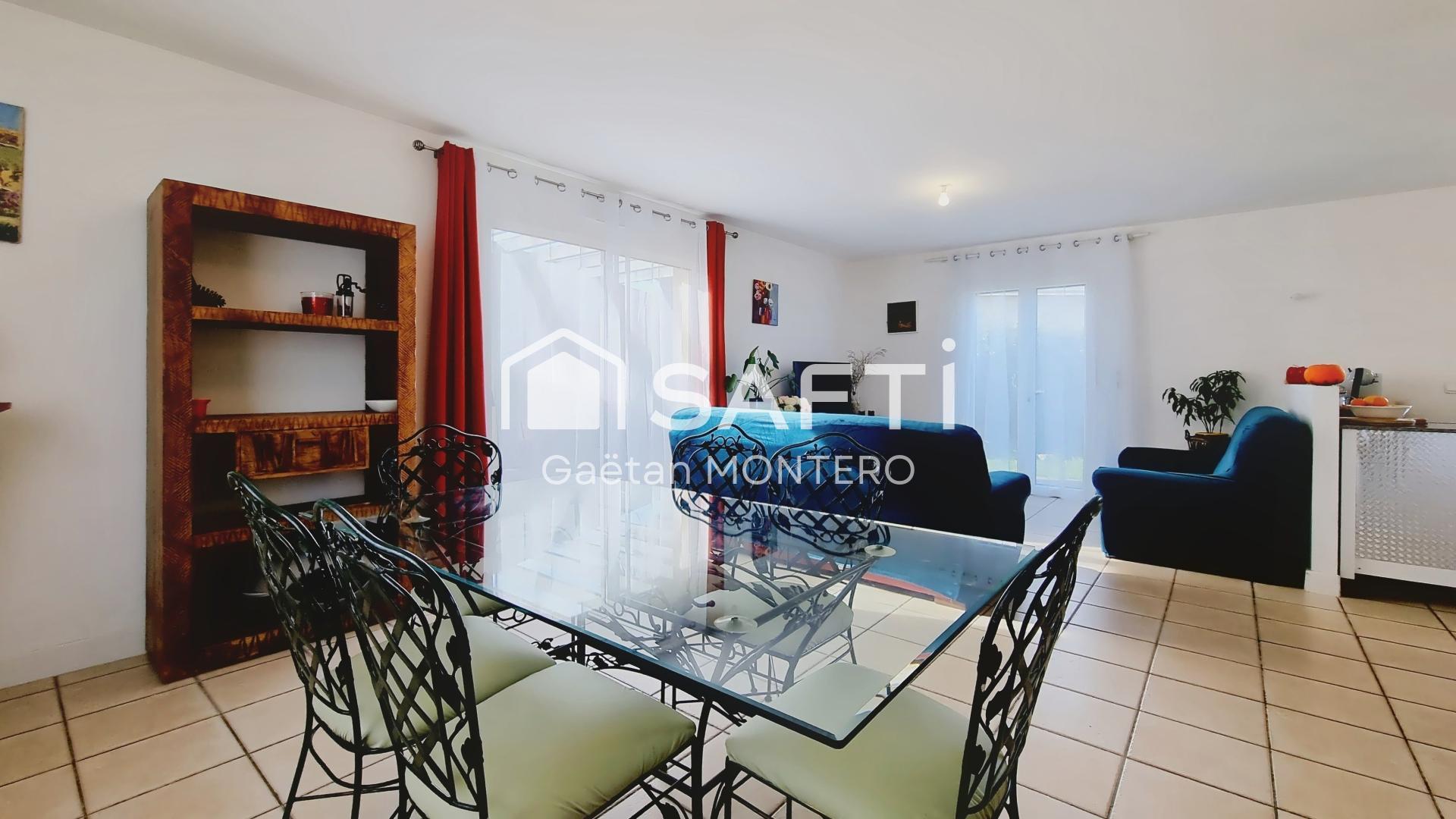 Construite en 2005, elle se compose d’une pièce de vie lumineuse avec cuisine ouverte, de trois chambres, d’une salle de bain, d’un WC indépendant, d’un garage attenant et 2 places de stationnement. Son agencement optimisé en fait un lieu de vie agréable.